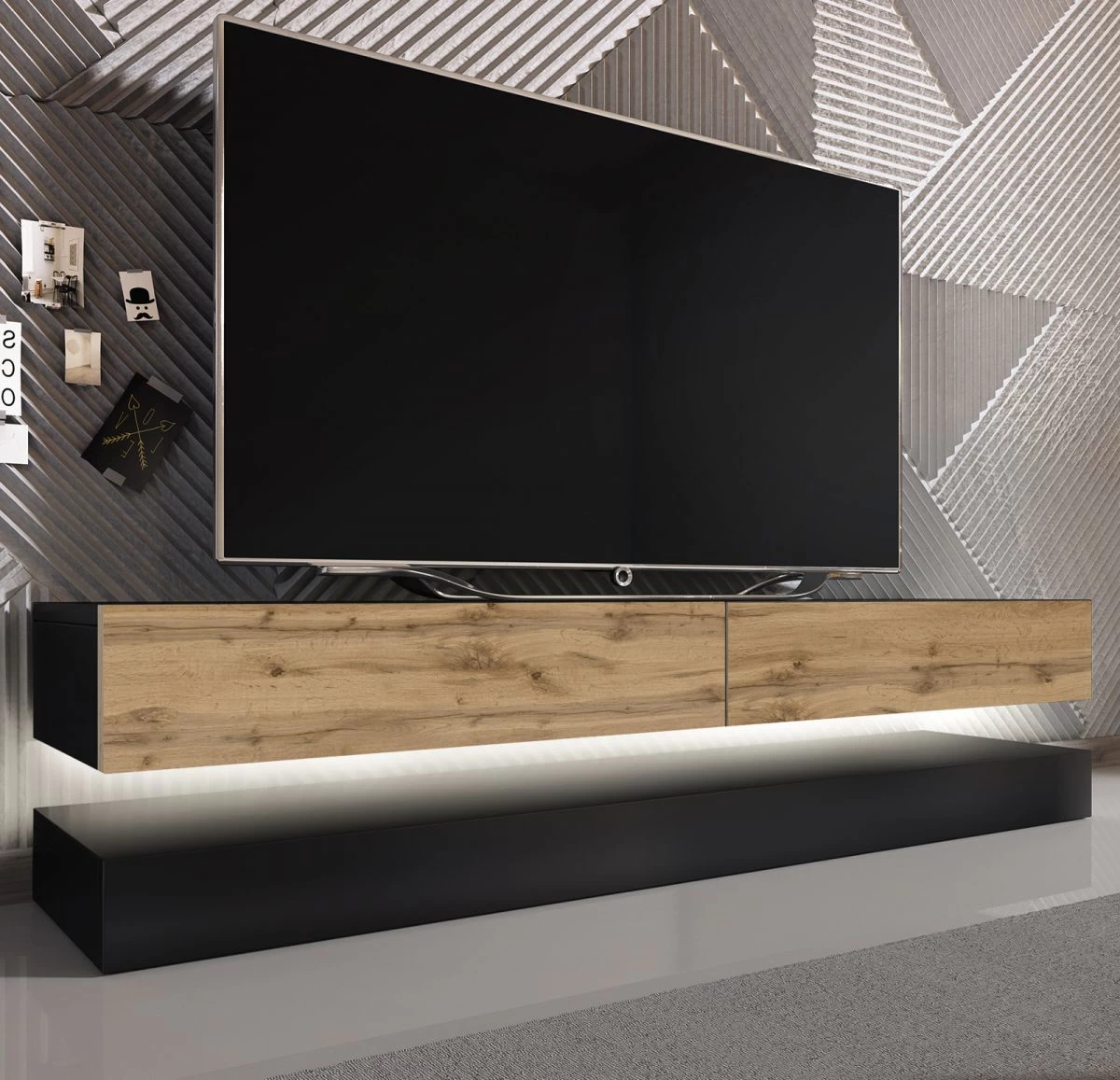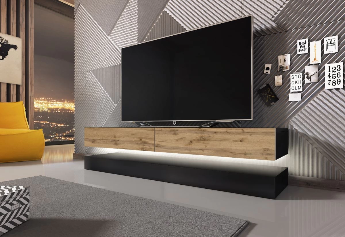 Produktbeschreibung für TV Lowboard „Bird“, schwarz und Eiche, 140 x 45 cm,