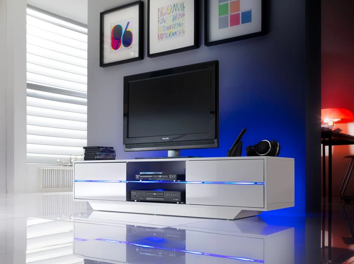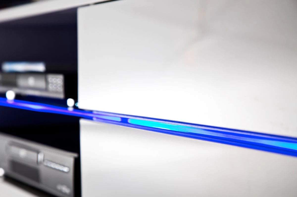 TV-Lowboard „Blues“, weiß Hochglanz lackiert, inkl. LED Beleuchtung, 160 x 36 cm