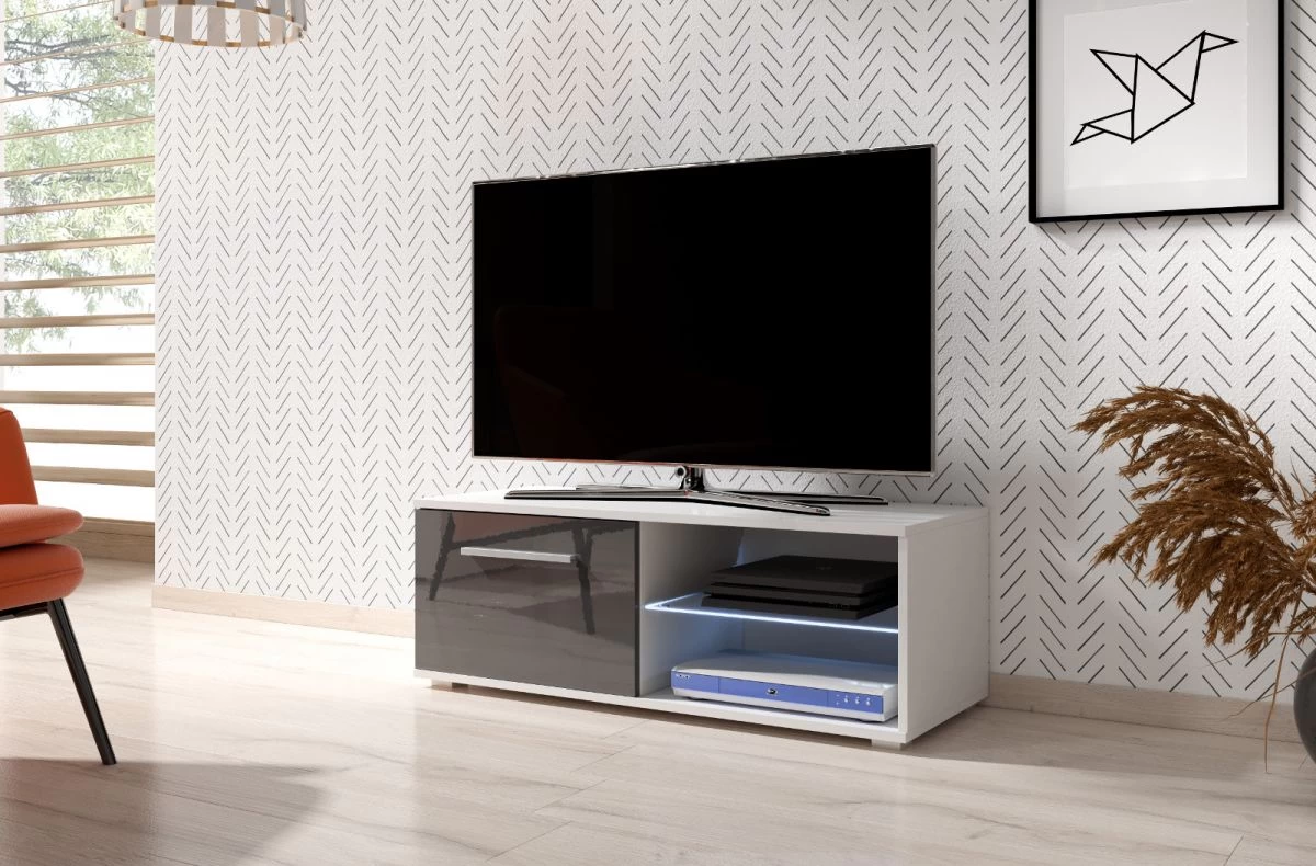 Mit dem TV Lowboard „Earth“ in edlem Grau Hochglanz bereichern Sie Ihr Wohnzimmer um ein elegantes Möbelstück und bekommen gleichzeitg den perfekten Standort für Ihren Fernseher. Der TV-Schrank hat einen robusten Korpus in weißem Dekor mit einer ABS-Schutzkante gegen Beschädigungen sowie eine schicke Front in Grau Hochglanz. Aufgrund seiner glatten Oberflächen ist das Lowboard besonders pflegeleicht und lässt einfach mit einem feuchten Tuch reinigen.