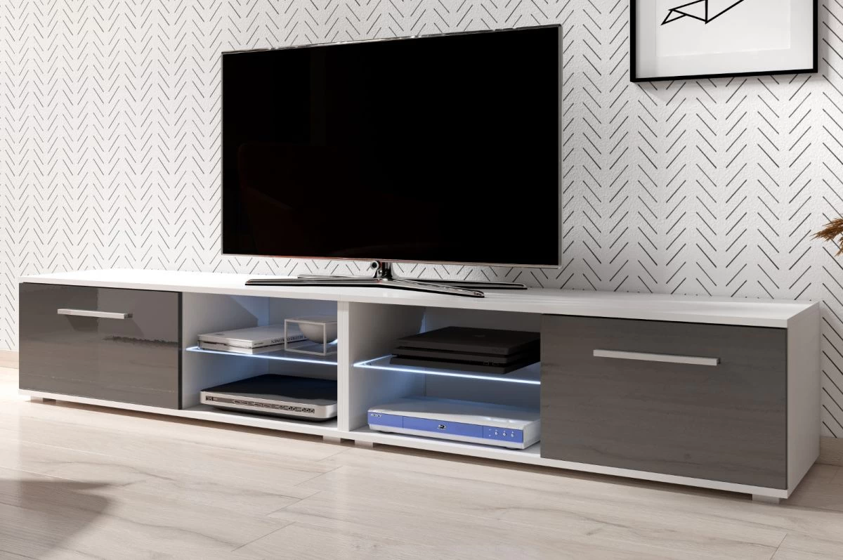Produktbeschreibung für TV Lowboard „Earth“, grau Hochglanz und weiß,