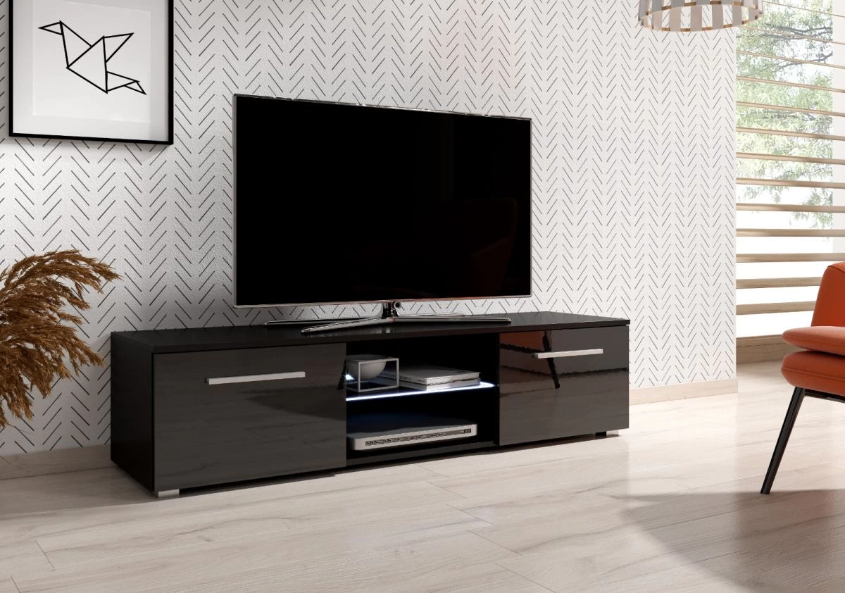 Produktbeschreibung für TV Lowboard „Earth“, schwarz Hochglanz, mit LED,