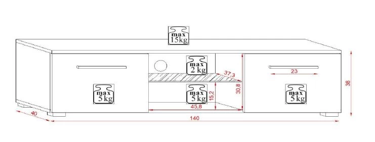 Neben der wertigen Optik und der sehr guten Qualität überrascht der Fernsehschrank mit jeder Menge Stauraum bei wenig Platzbedarf. Mit einer Größe von (BxH) 140 x 36 cm bietet Ihnen der TV Schrank auf seinem Oberboden genug Platz für einen Großbildfernseher. Zudem steht in den verschlossenen Fächern hinter den beiden Klappen viel Platz für Ihre Medien zur Verfügung. Die zwei offenen Gerätefächer mit Glaseinlegeboden aus 4 mm starkem ESG-Sicherheitsglas nehemen Ihre Unterhaltunge-Elektronik wie Receiver, Spielekonsole oder Blu-Ray Player auf.