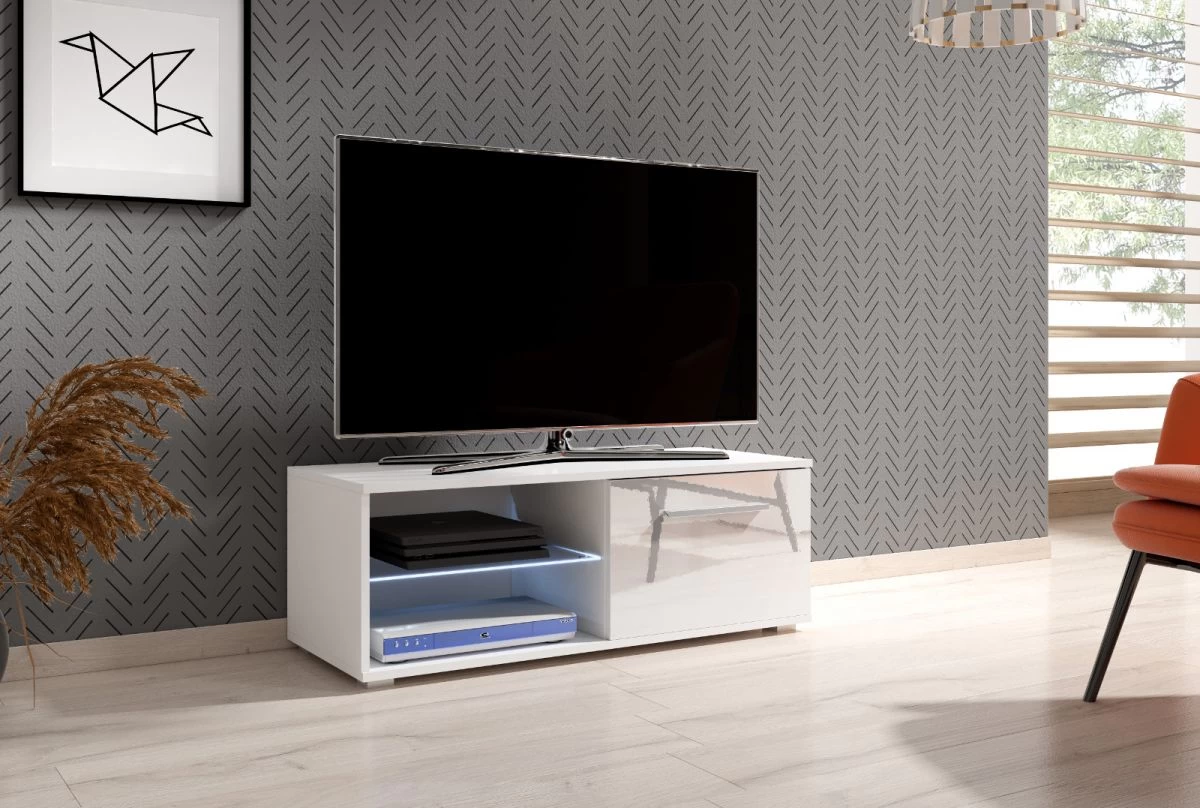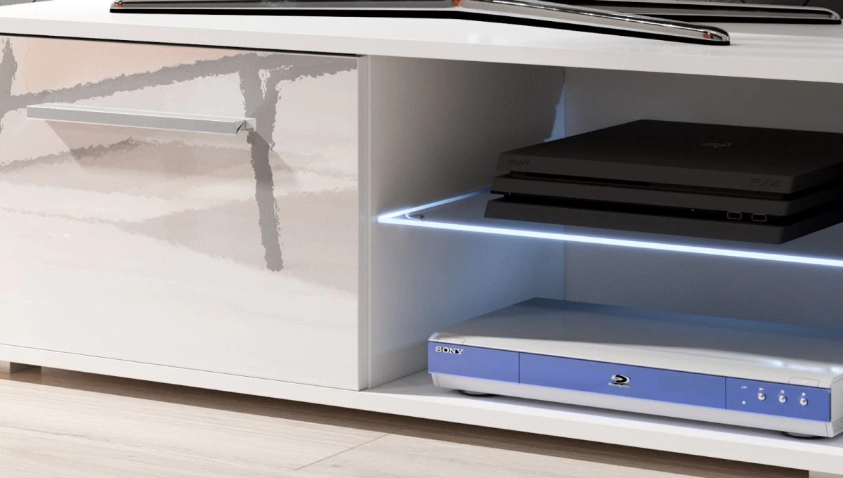 Produktbeschreibung für TV Lowboard „Earth“, weiß Hochglanz, mit LED,