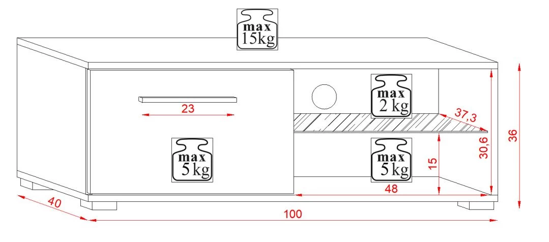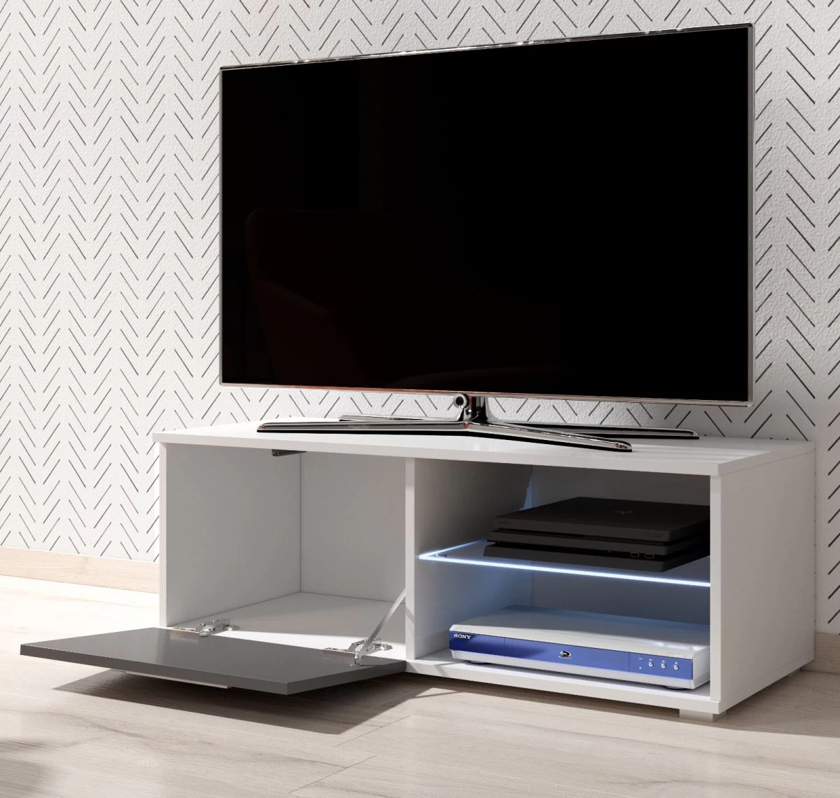 Neben der zeitlosen Optik und der guten Qualität überrascht der Fernsehschrank mit ausreichend Stauraum bei sehr geringem Platzbedarf. Mit einer Größe von (BxT) 100 x 40 cm hält der TV Schrank auf seiner Oberseite genug Platz für einen Großbildfernseher bereit. Abgesehen davon bietet das geschlossene Fach hinter der Klappe viel Stauraum für Medien und Entertainment-Zubehör. In den zwei offenen Gerätefächern mit Glaseinlegeboden aus 4 mm starkem ESG-Sicherheitsglas findet Ihre Unterhaltungs-Elektronik Platz.