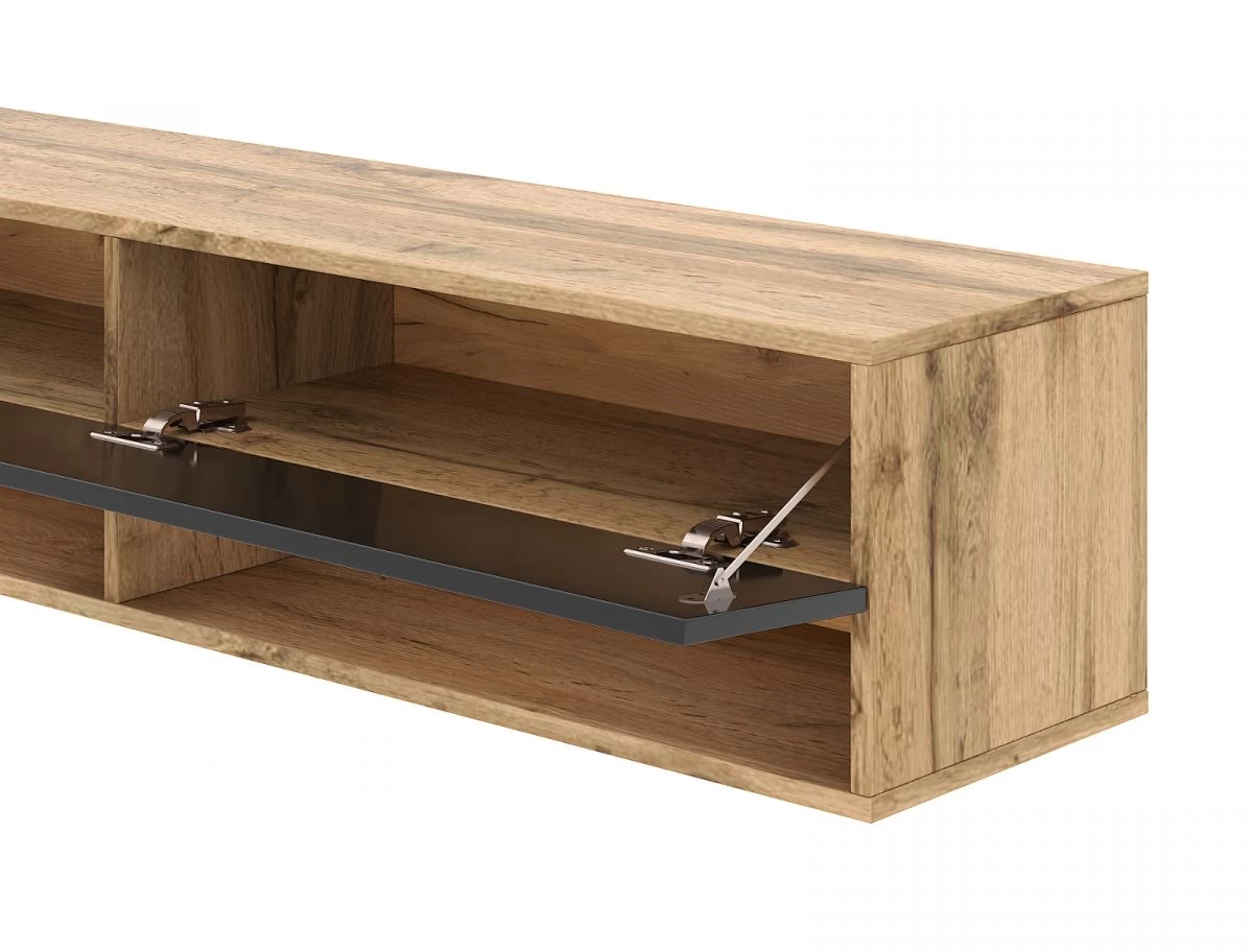 Das Modell „Epsom“ bietet folgende Besonderheit: Dieses TV-Lowboard wird an der Wand befestigt und hängend genutzt.