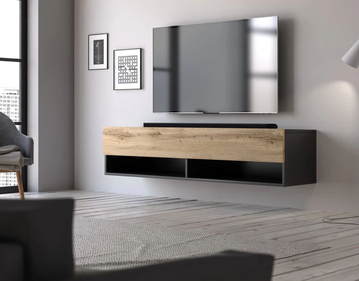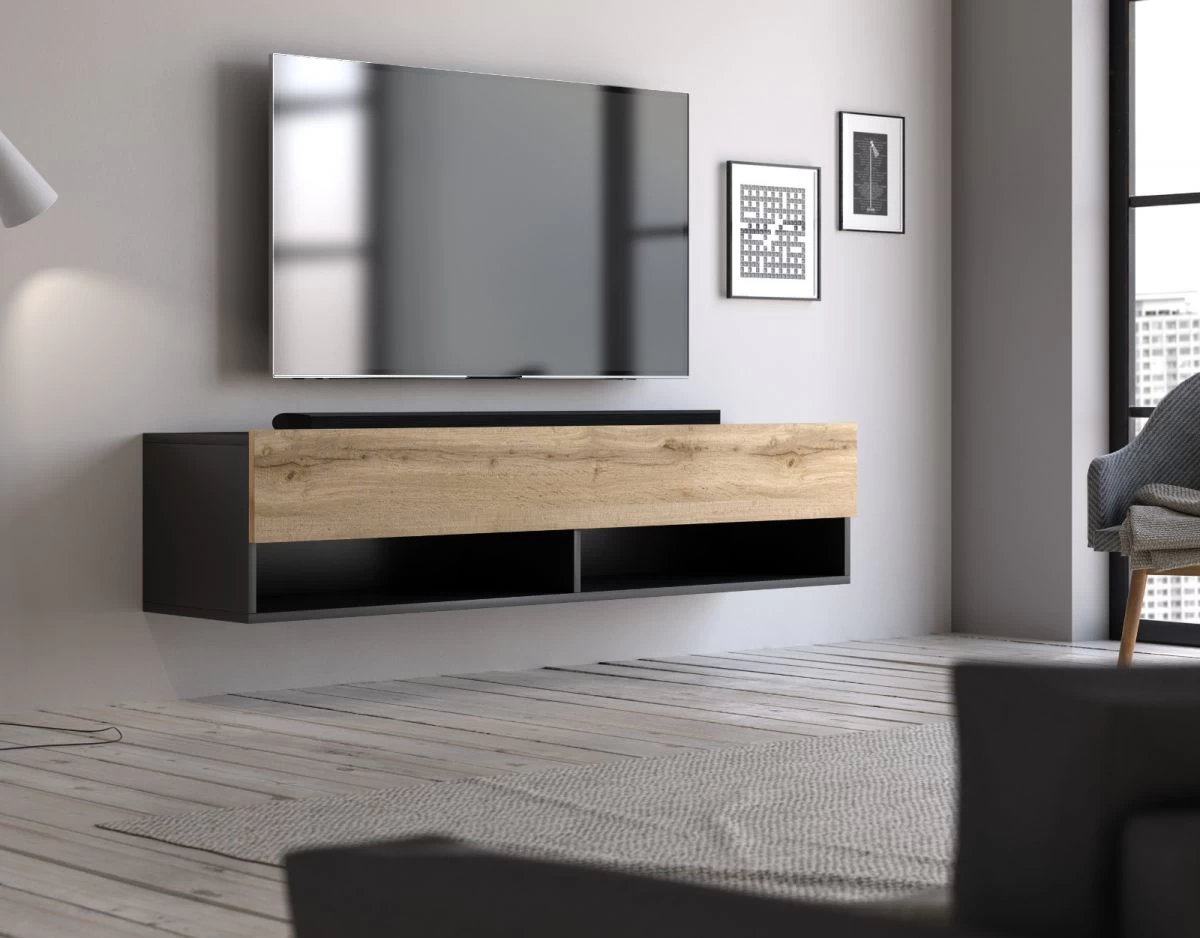 Das Modell „Epsom“ bietet folgende Besonderheit: Dieses TV-Lowboard wird an der Wand befestigt und hängend genutzt.
