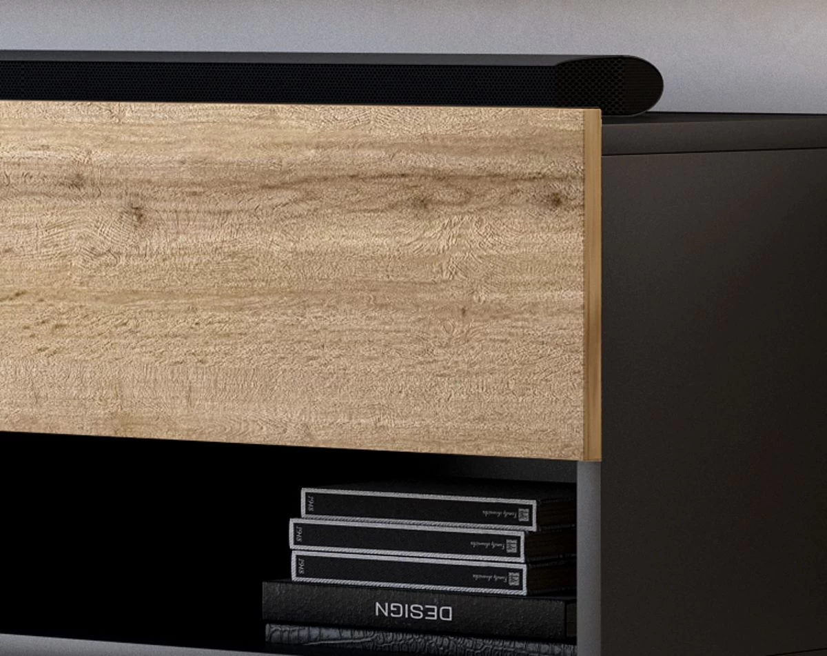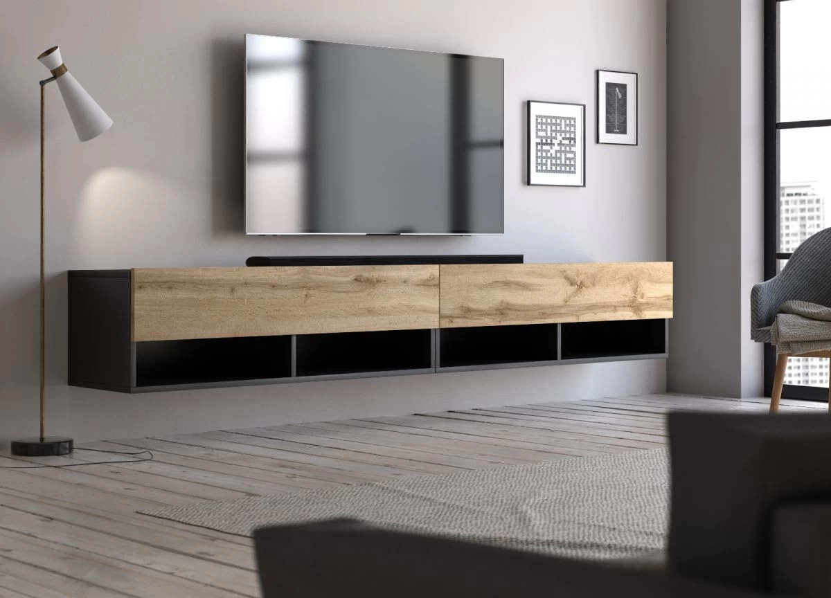 TV-Lowboard „Epsom“, Wotan Eiche und schwarz, hängend, 200 x 30 cm