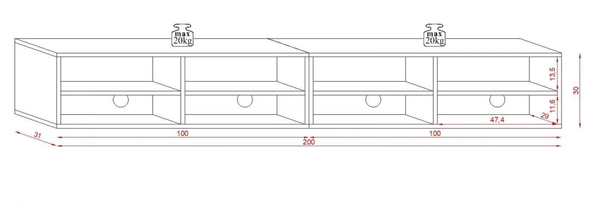 - Maximale Belastbarkeit 20 Kg je Seite