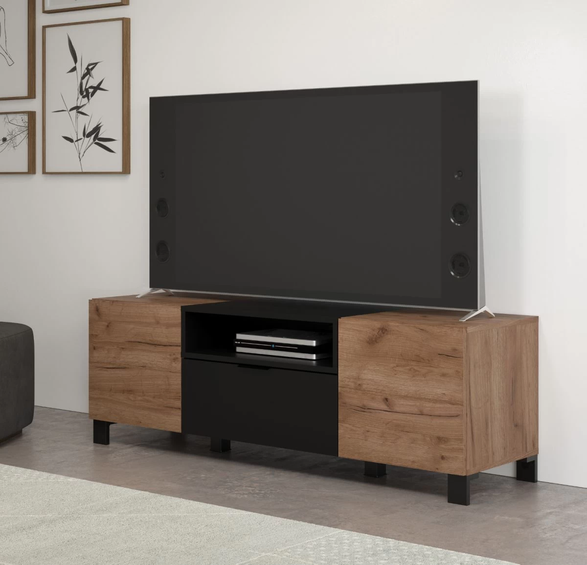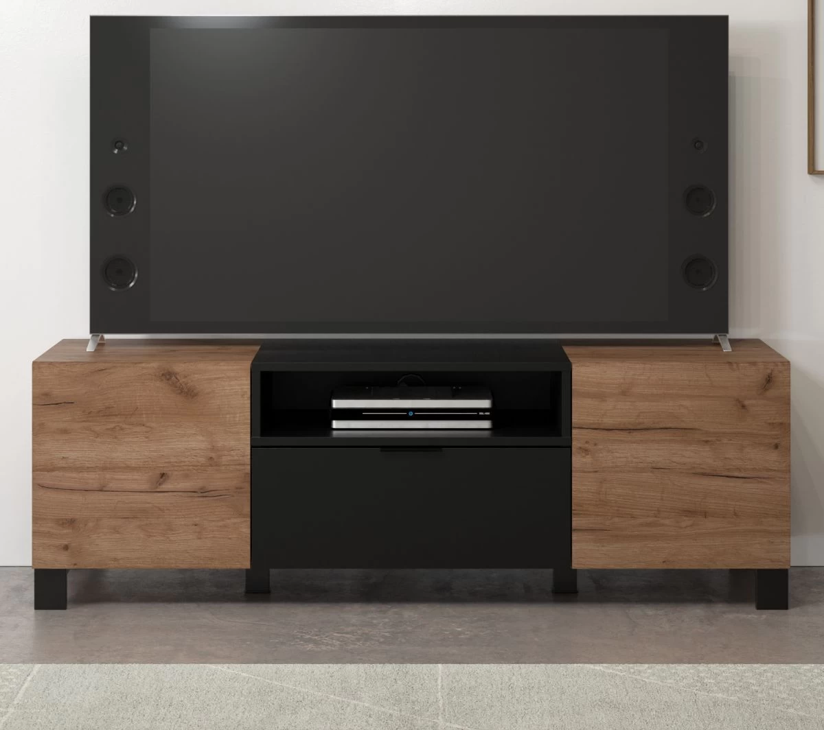 TV-Lowboard „Kendo“, Eiche Tabak und schwarz matt, 144 x 47 cm