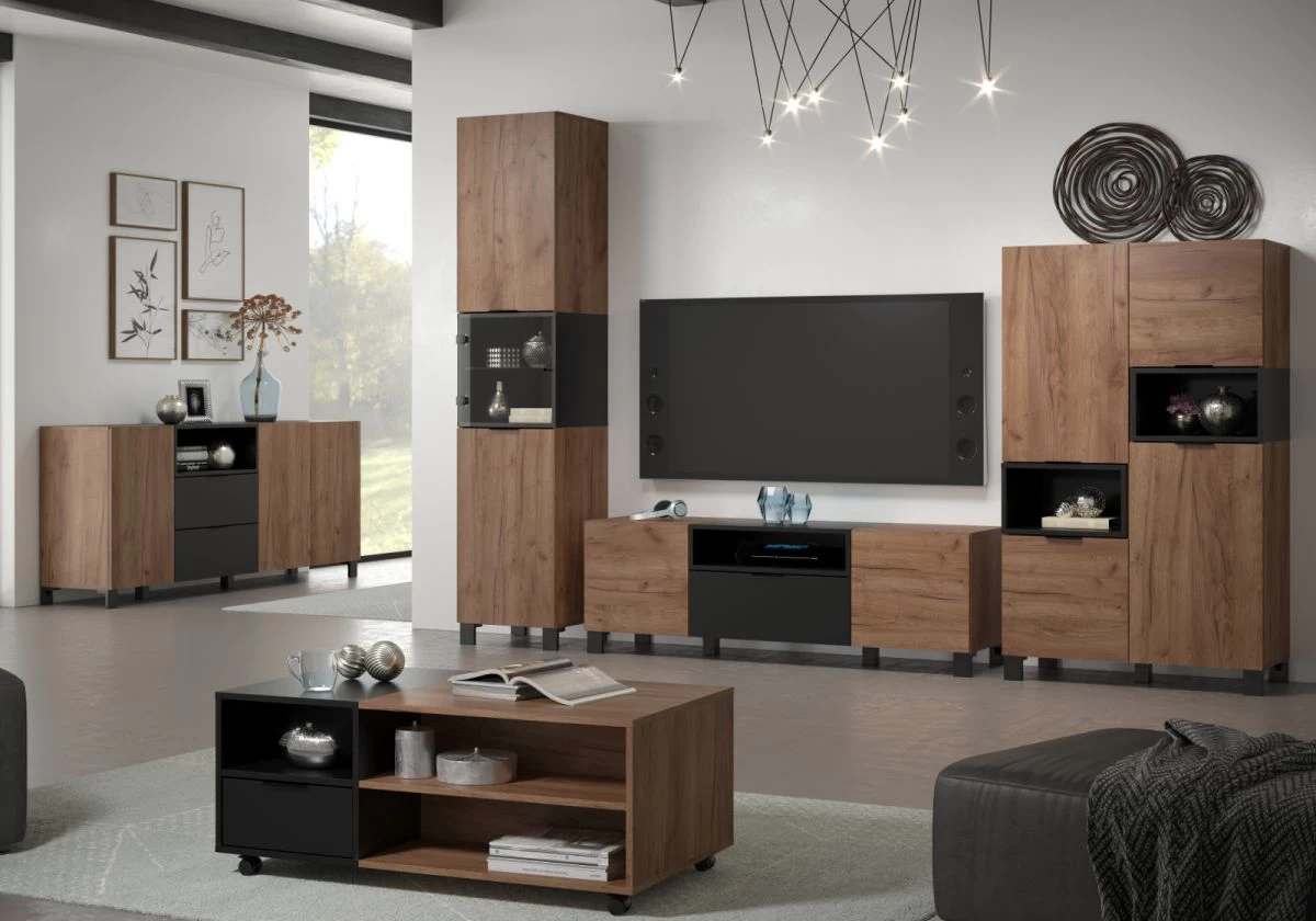 Aufgrund des TV-Lowboards „Kendo“ in Eiche Tabak und schwarz matt (144 x 47 cm) haben Sie die Gelegenheit, Ihrem Fernsehgerät einen attraktiven Platz zu geben. Das Mediamöbel findet in jedem Wohnzimmer seinen Platz. Eine Kabeldurchführung am offenen Gerätefach organisiert Kabel von Geräten oder Lautsprechern, sodass kein lästiges Chaos entsteht. Hinter einer Klappe sowie zwei Türen können verschiedenste Gegenstände auf vier Einlegeböden verstaut werden. Das Modell „Kendo“ aus dem Hause Trendteam macht in seinem trendigen, modernen Stil eine hervorragende Figur. Es ist im Dekor Tabak Eiche und in der Farbe mattes Schwarz gehalten, leistet durch das FSC®-Label einen kleinen Beitrag zu mehr Nachhaltigkeit und besticht mit einem dekorativen schwarzen Handgriff. Die verwendeten Werkstoffe sorgen für eine besonders widerstandsfähige sowie pflegeleichte Beschaffenheit des TV-Schranks. Das Modell „Kendo“ hat eine Breite von insgesamt 144 cm, eine Höhe von 47 cm sowie eine Tiefe von 40 cm. Außerdem gibt es dieses TV-Möbel in unterschiedlichen Größenausführungen. Dieses TV-Lowboard schafft mühelos Ordnung in Ihrem Wohnbereich.