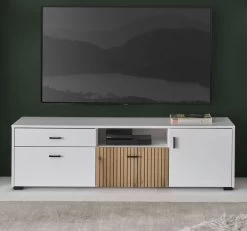 TV-Lowboard „Merced“, weiß matt und Evoke Eiche Dekor, 150 x 44 cm