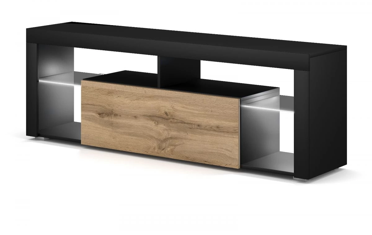 Produktbeschreibung für TV Lowboard „Mount“, schwarz und Wotan Eiche,