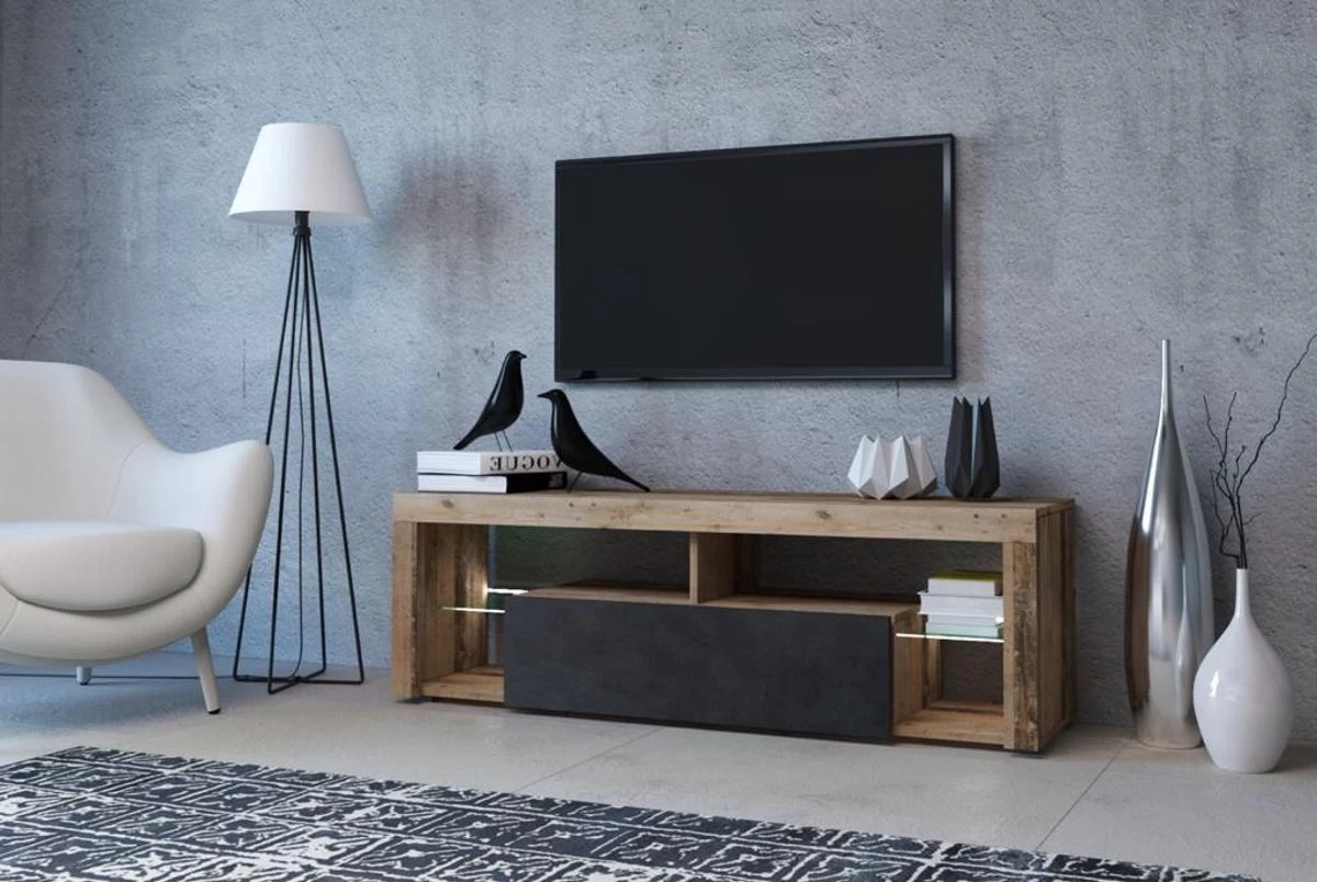 Das moderne TV Lowboard „Mount“ in Matera grau und Old Used Wood hell ist die richtige Anschaffung für Ihr Pantoffelkino. Das TV Unterteil (BxT 140 x 51 cm) im two-tone Look kombiniert praktische Ausstattungselemente mit gefälliger Optik.
