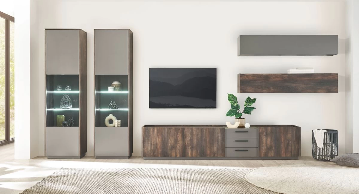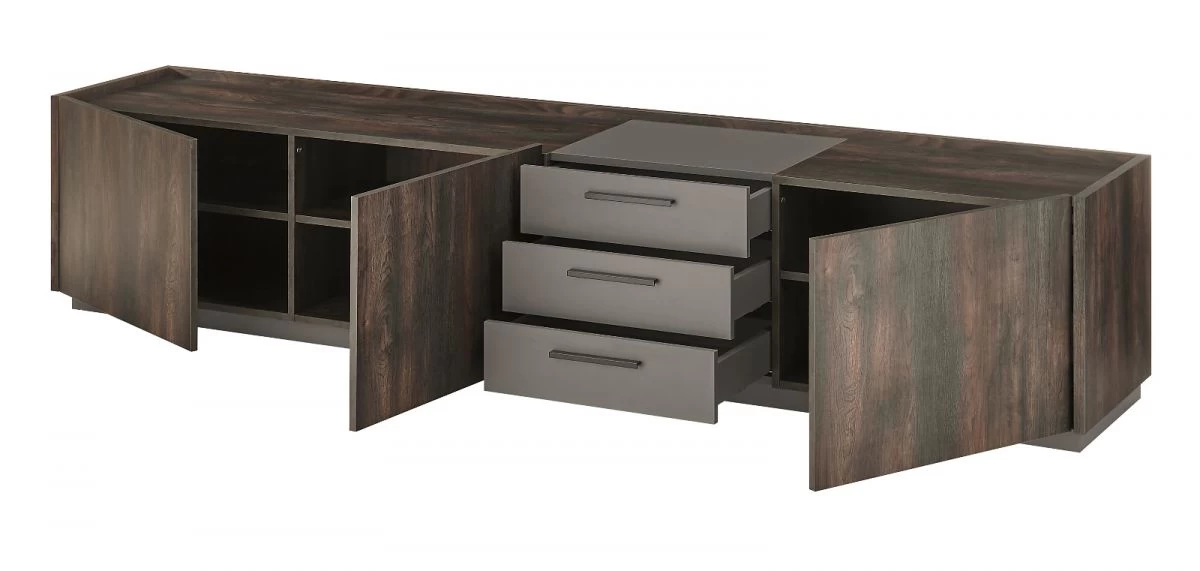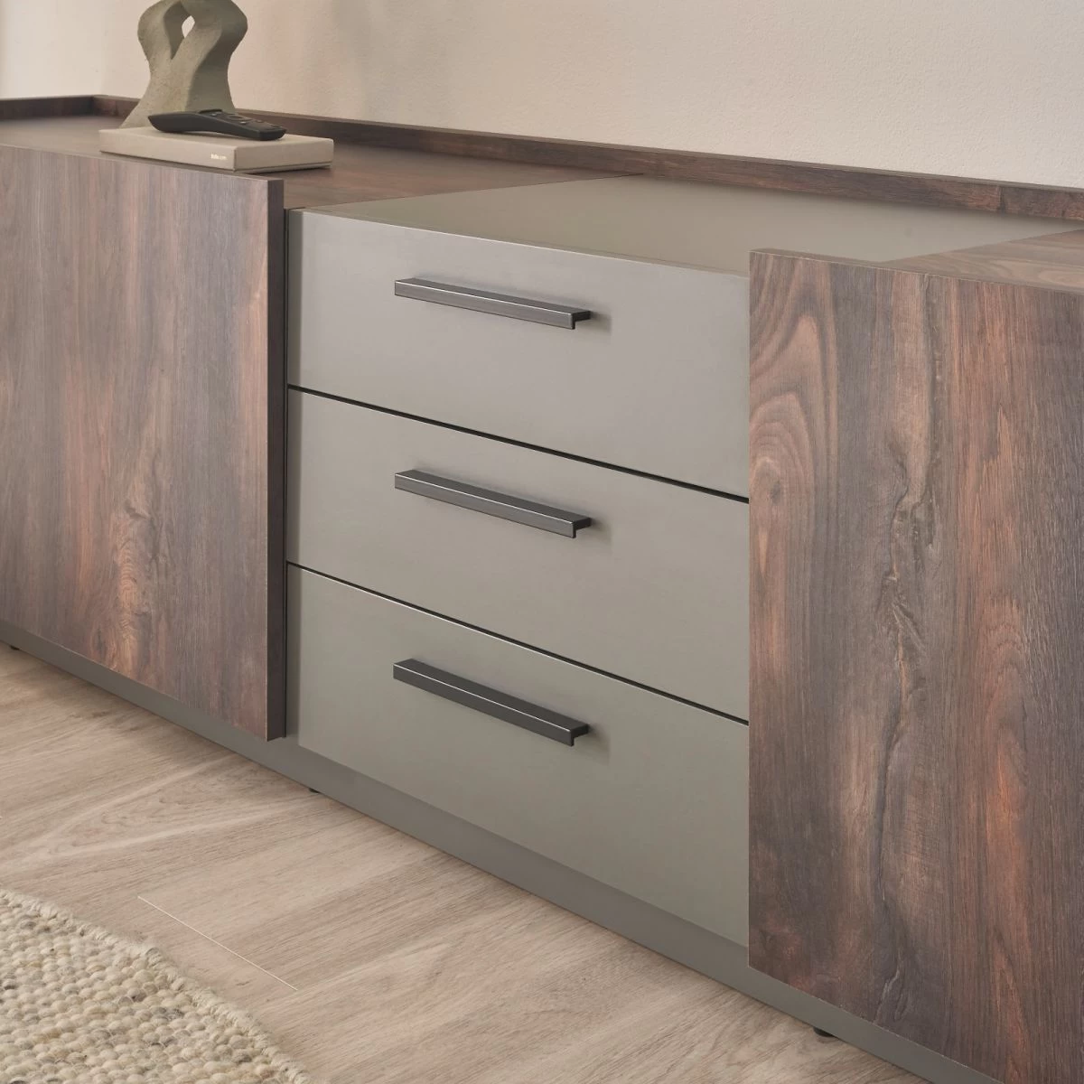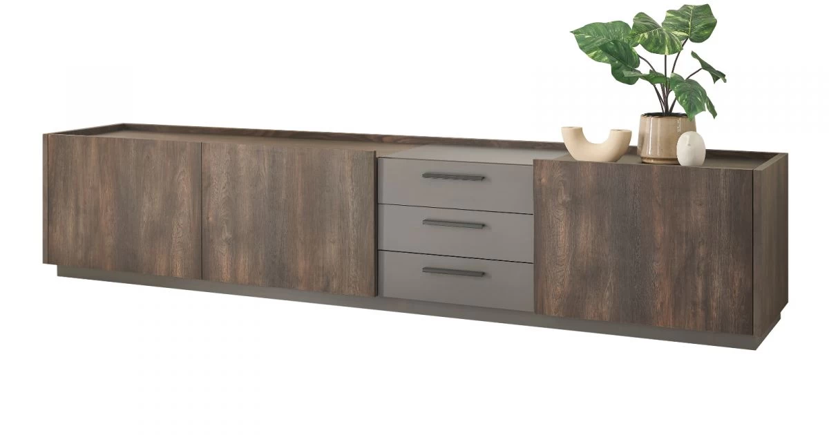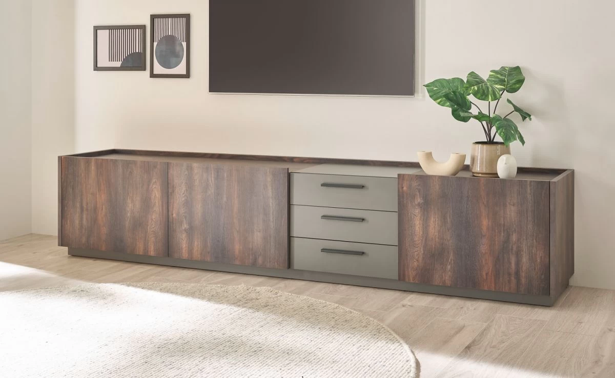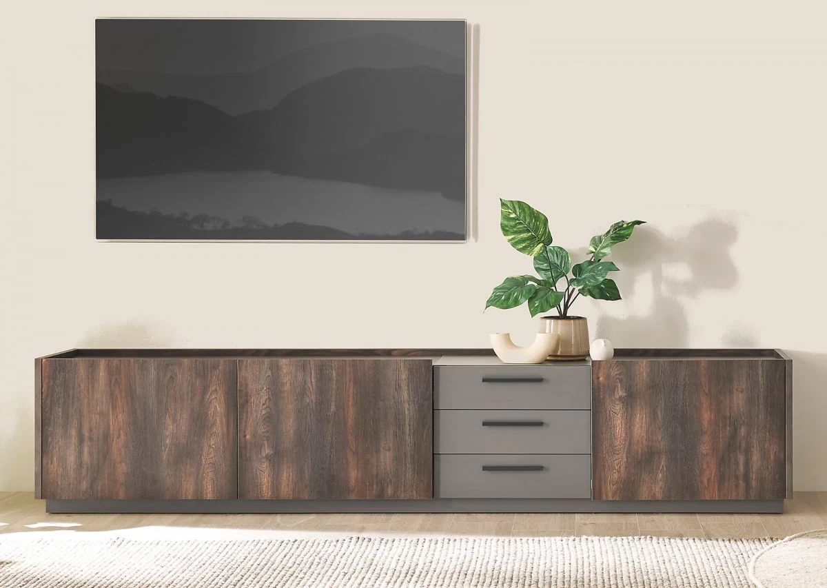 TV-Lowboard „Piano,“Thermo Eiche Dekor und grau, 240 x 50 cm
