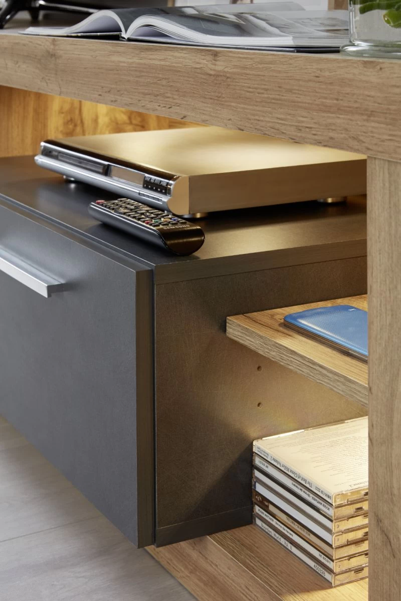TV-Lowboard „Rock“, Matera Anthrazit und Wotan Eiche, 150 x 48 cm