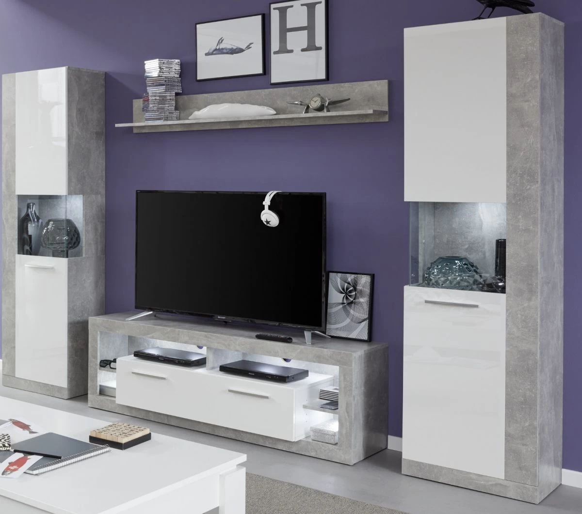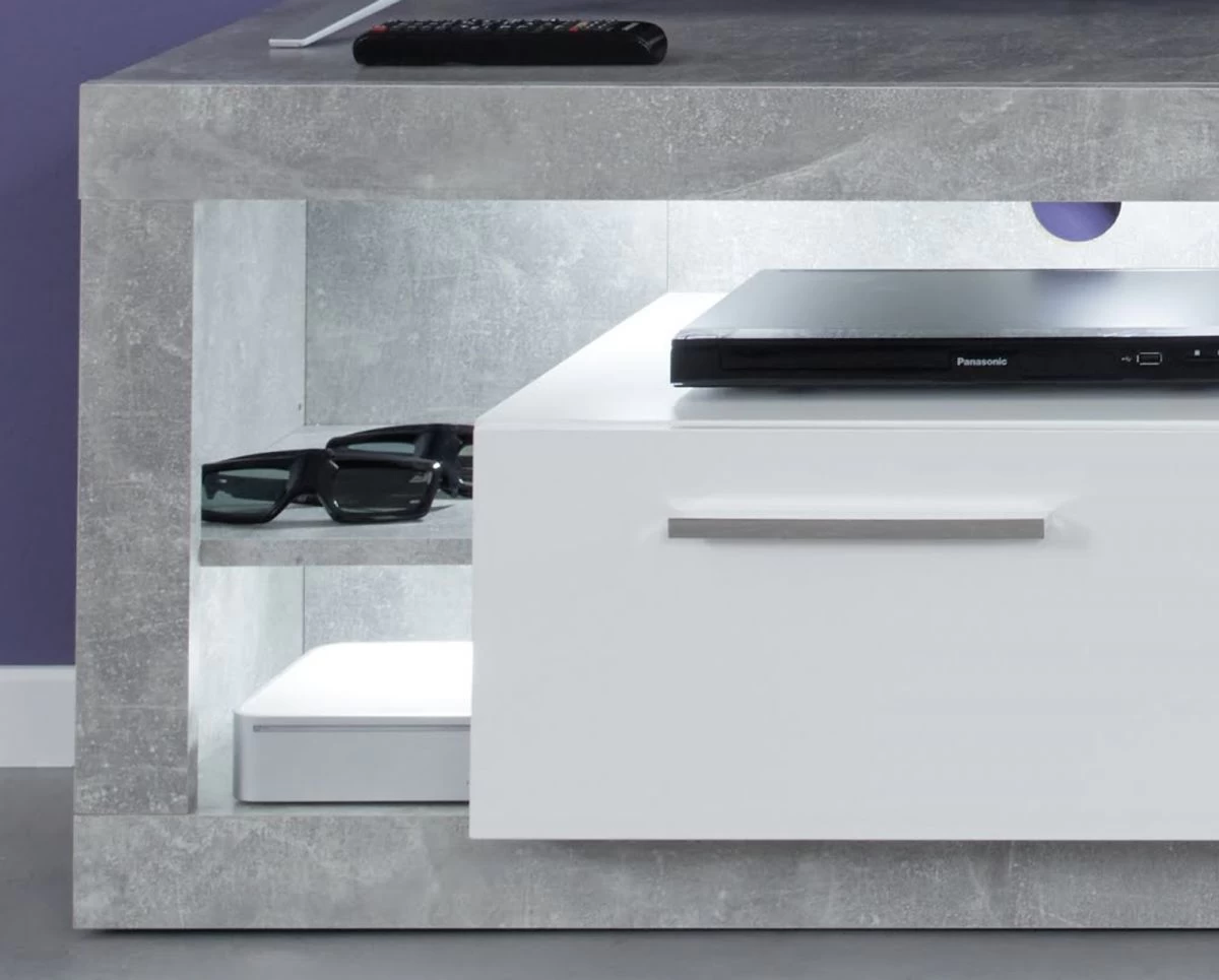 TV-Lowboard „Rock“, weiß Hochglanz und Stone grau, 150 x 48 cm
