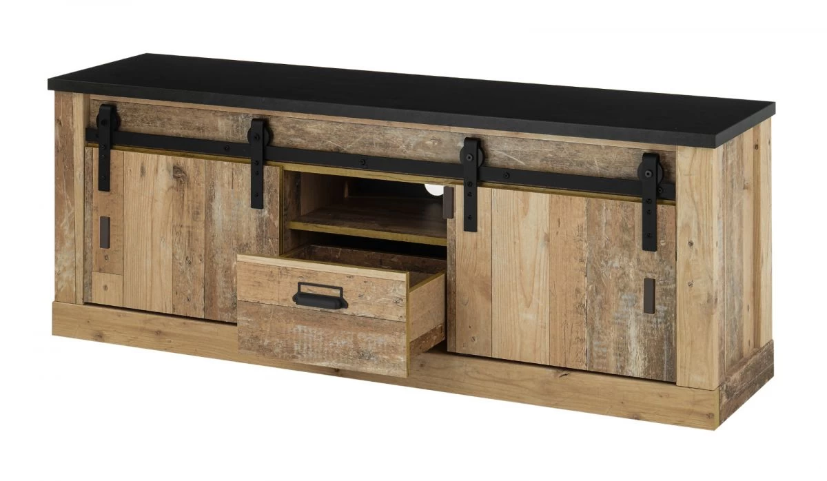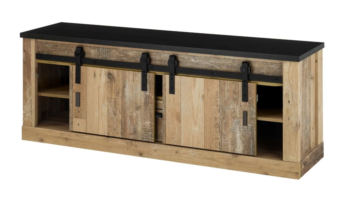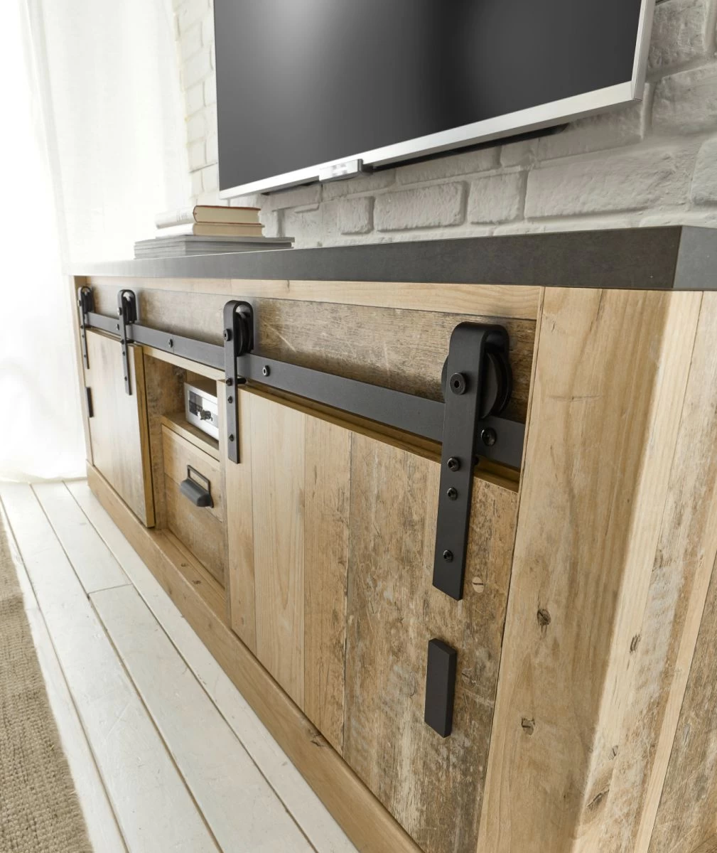 TV-Lowboard „Stove“, Used Wood hell Dekor und anthrazit, 162 x 61 cm