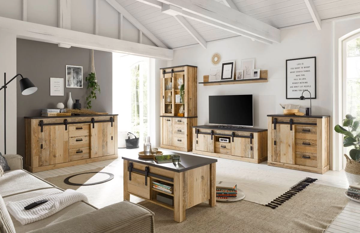 Sie werden das TV-Lowboard „Stove“ in Used Wood hell und anthrazit (162 x 61 cm) lieben. Das TV-Möbel findet in Ihrem Wohnzimmer einen Platz und erweitert mit ihren zwei Schiebetüren Ihren Stauraum. Das Modell „Stove“ überzeugt mit einer Schublade. Aufgrund der Kabeldurchführung lässt es sich ideal für die Nutzung von technischen Geräten verwenden. Der Medienschrank stellt zwei Einlegeböden bereit. Als besonderes Extra hat das Modell „Stove“ eine nützliche Soft-Close-Funktion. Das TV-Lowboard im natürlichen, trendigen Design besteht aus FSC®-zertifiziertem Material aus nachhaltig bewirtschafteten Wäldern. Das im Dekor Used Wood hell mit Plankenoptik und Anthrazit gestaltete Möbelstück zeichnet sich durch seine pflegeleichte und besonders widerstandsfähige Beschaffenheit aus. Es hat eine Breite von 162 cm, eine Gesamthöhe von 61 cm sowie eine Tiefe von 43 cm. Das Modell „Stove“ lässt sich mit drei ästhetischen schwarzen Griffen aus Metall öffnen und schließen und ist in unterschiedlichen Größenvarianten lieferbar. Dieses TV-Lowboard ist ein absolutes Muss für alle Liebhaber gelungener Einrichtung.