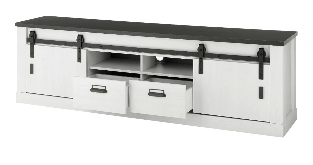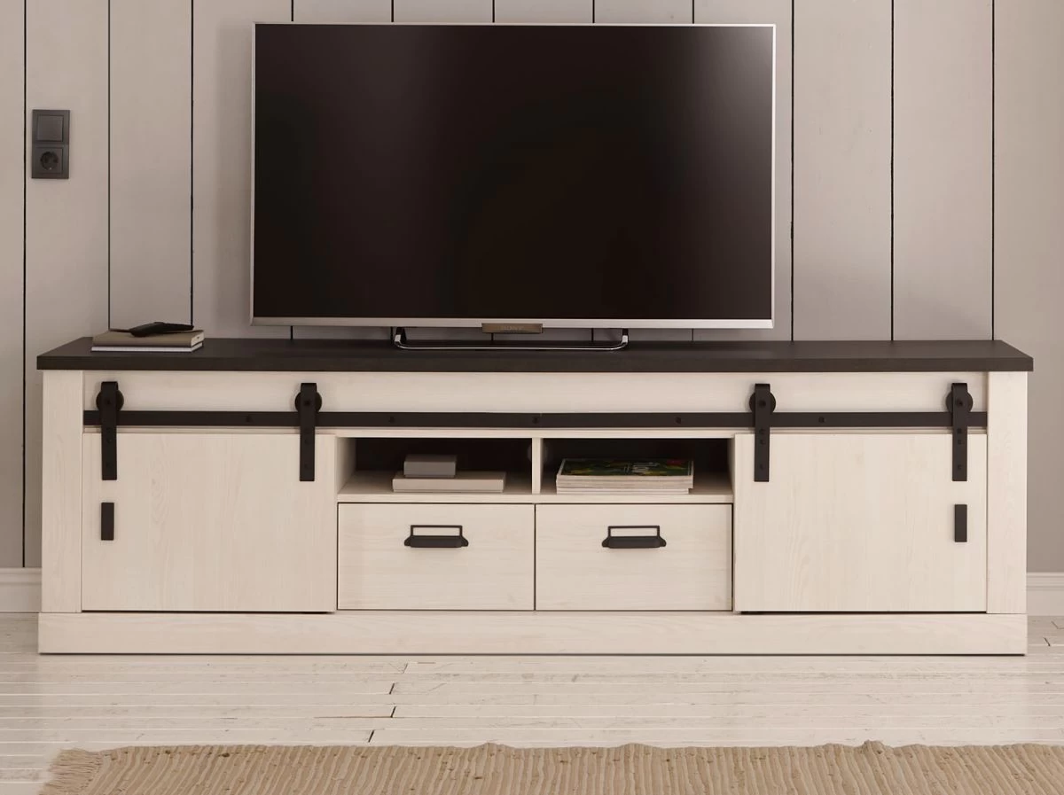 TV-Lowboard „Stove“, weiß Pinie Dekor und anthrazit, 201 x 61 cm