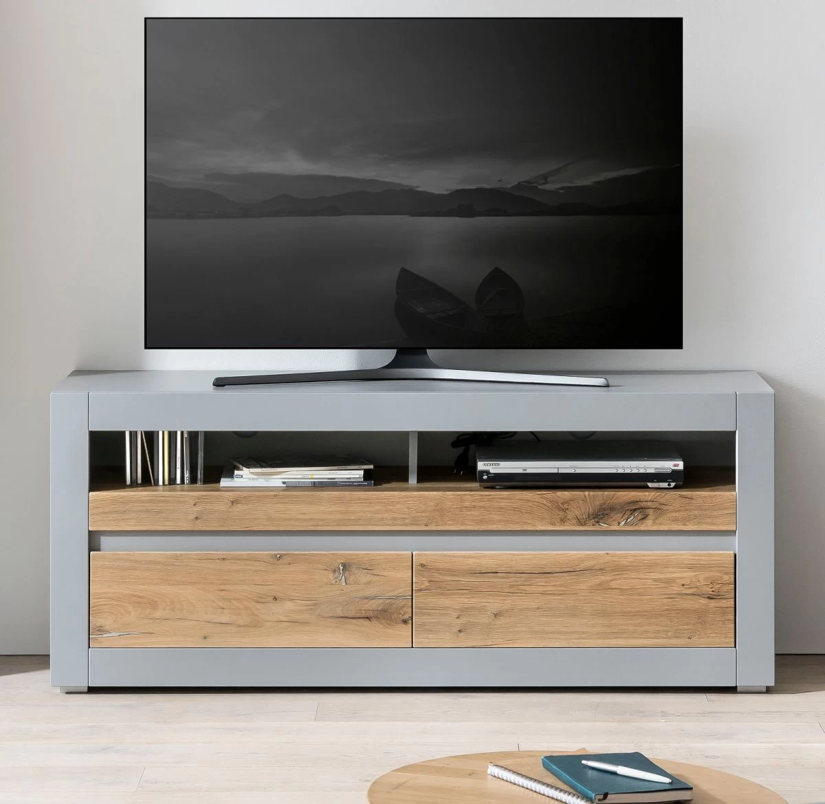 TV-Lowboard „Tamaris“, Platingrau matt und Zinneiche Dekor, 150 x 63 cm