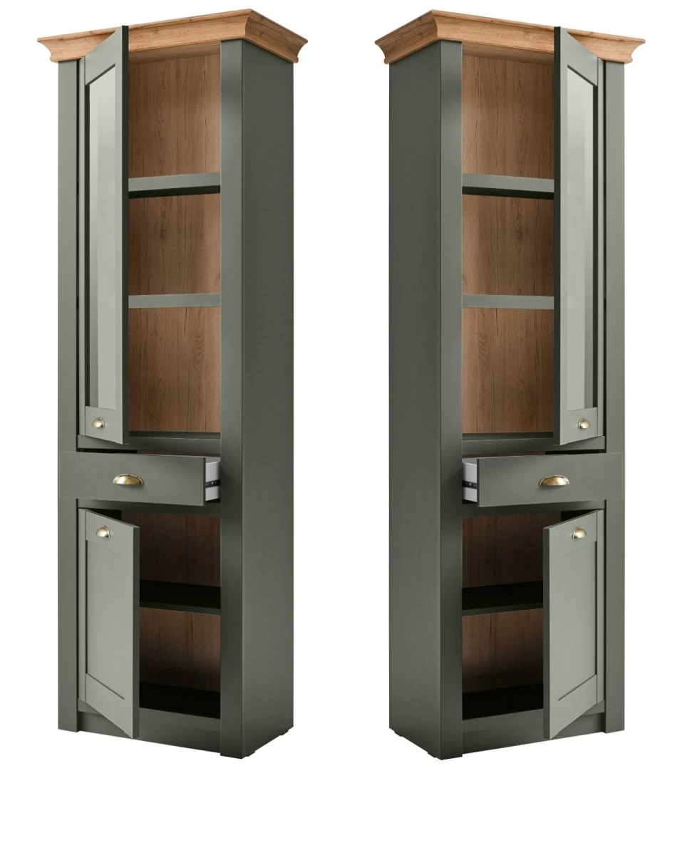 Vitrine „Norwich“, grün mit Wotan Eiche Dekor, Landhausstil, 68 x 207 cm