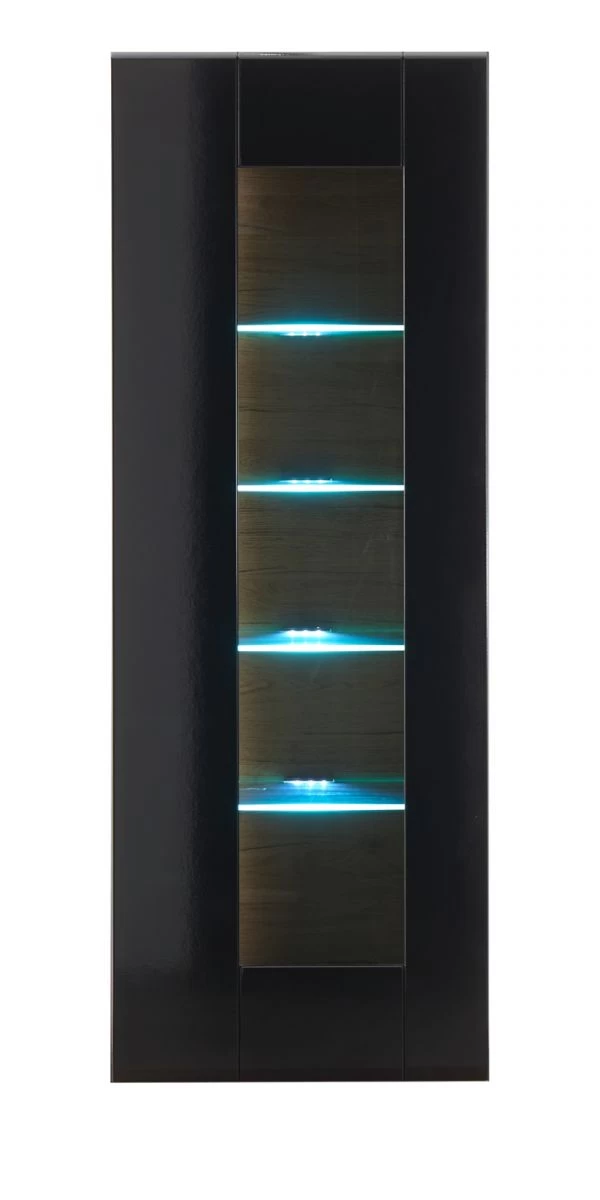Vitrine „Savanna“, schwarz Hochglanz und Grandson Eiche, hängend / stehend, 45 x 131 cm